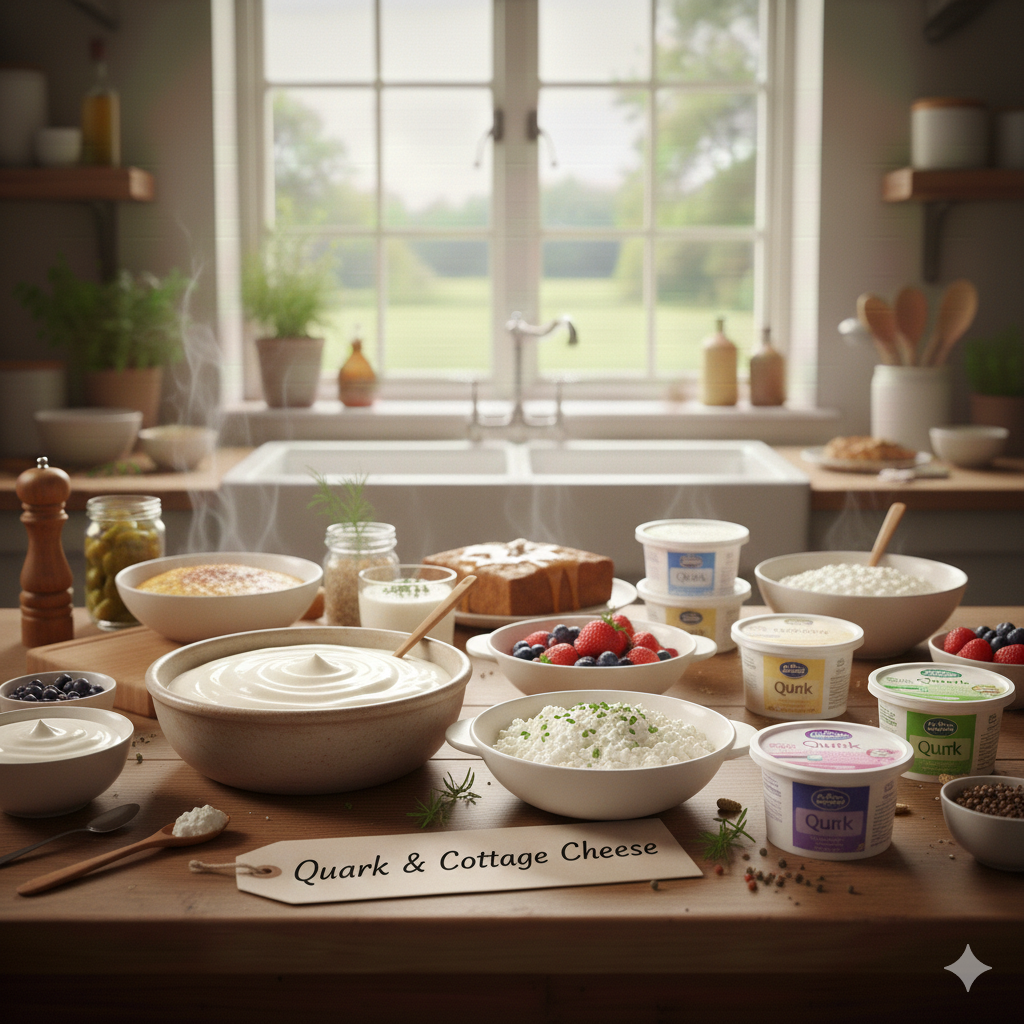Quark and cottage cheese consists of drained cheese curd and it has a mild, sometimes sweet flavor. Even though quark and cottage cheese are dairy products made from milk, the nutrition facts will show that they are fairly low in both calories when compared to other cheeses. The calorie chart and nutrition label for quark and cottage cheese indicates that most of the calories come from protein but there is a good balance of carbs and fat. This nutritional information means that quark and cottage cheese provide good nutritional value while still being low in calories.
